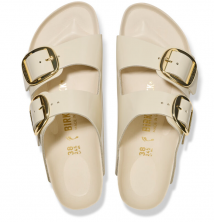 The BIRKENSTOCK Arizona Big Buckle Patent Leather sandal is a modern twist on the classic two-strap design, featuring amplified buckles and a high-shine finish. This version combines elegance with comfort, making it a standout choice for those seeking both style and support.