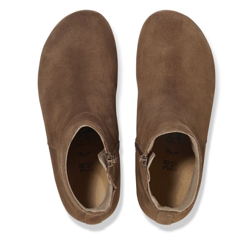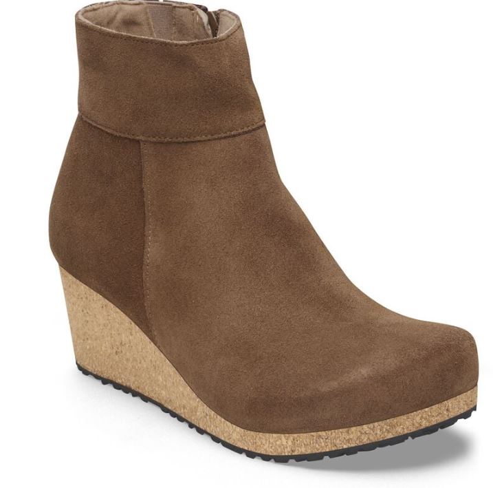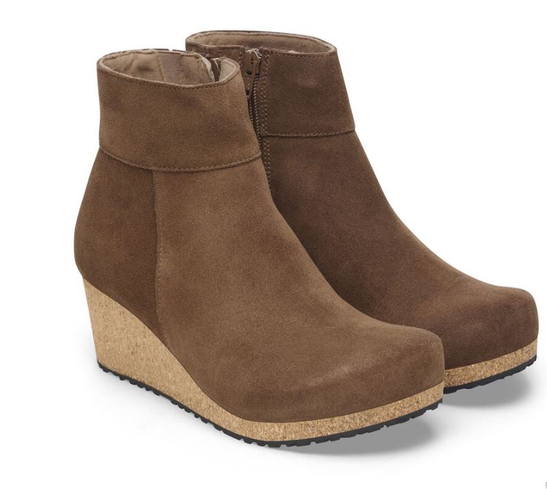 The Birkenstock Ebba Ankle Boot combines the contoured comfort of the BIRKENSTOCK footbed with a stylish cork wedge heel, designed to provide support without adding pressure to the front of your foot. Crafted in smooth suede for a classic and versatile look, this boot elevates your style while keeping you comfortable all day long.