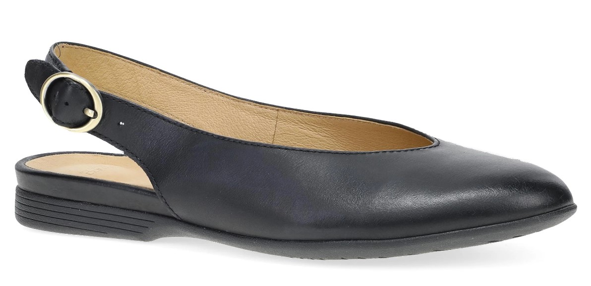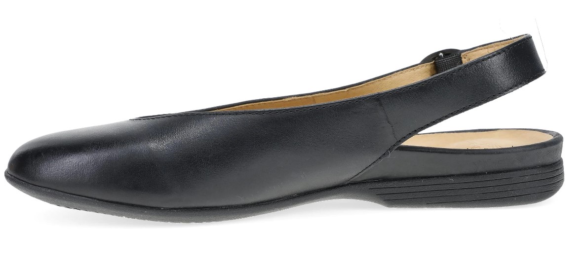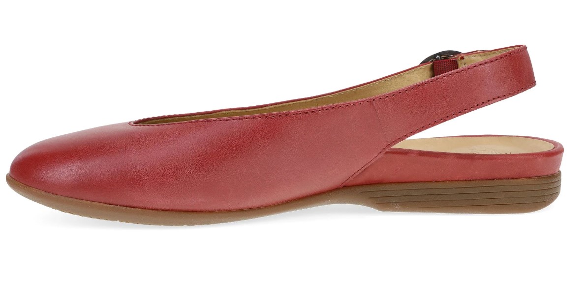 The Dansko Lea is a women's slingback flat that combines a sleek silhouette with all-day comfort. Featuring a pointed toe and an adjustable buckle strap, this shoe offers both style and a secure fit, making it a versatile addition to any wardrobe.