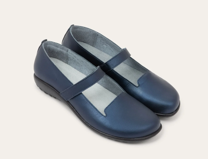 The Naot Purini is a sleek Mary Jane flat from Naot’s Koru Collection that combines elegant style with everyday comfort. Its soft leather upper and adjustable strap ensure a secure fit, while a cushioned removable footbed and lightweight sole make it ideal for all‑day wear — whether you’re commuting, travelling, or out running errands.