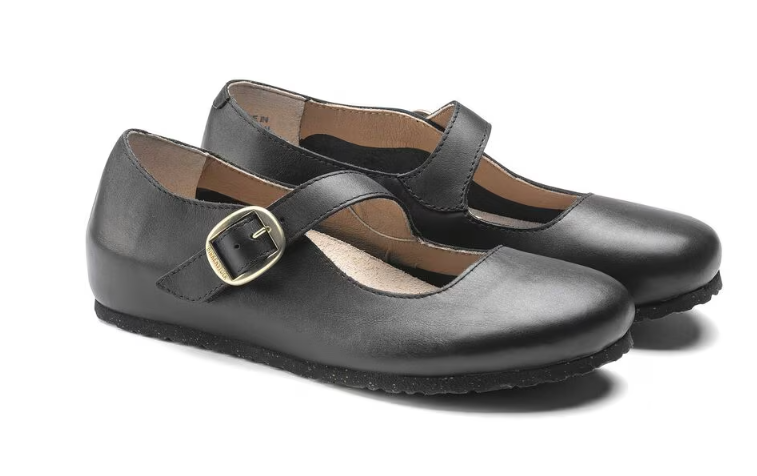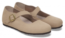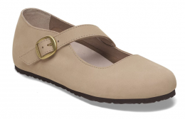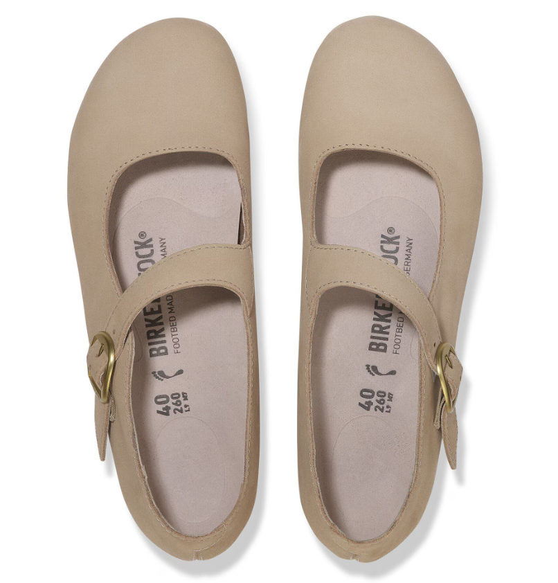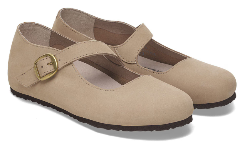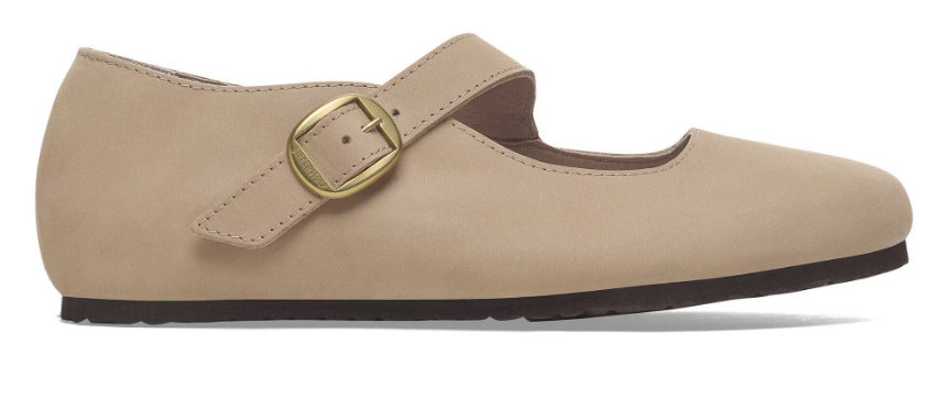 The Birkenstock Tracy is a ballet‑flat inspired Mary Jane that brings a delicate, classic feminine style to the legendary Birkenstock comfort. With its diagonal strap and buckle detail, elegant soft leather or nubuck materials, and the signature cork‑latex footbed, it’s made for all‑day wear with a refined silhouette.